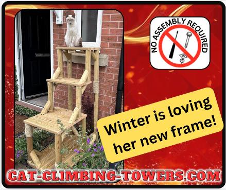 Meet Buddy, who couldn't even wait for the frame to be fully unpacked before hopping on his new steps! Another happy cat (and human!) thanks to our outdoor towers.