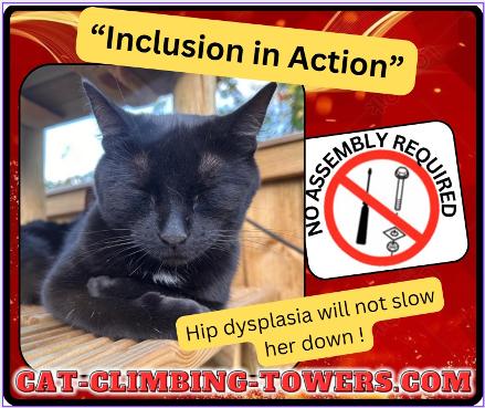 💛 One of these cats has hip dysplasia — but that doesn’t stop her from enjoying her garden adventures! With a little help from her Cat Climbing Tower, she’s right up there with her siblings, watching the world go by.