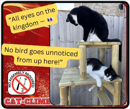 My Castle arrived yesterday and it’s great. It is in position in the garden but the cats were asleep at the time but as soon as they saw it they starting climbing on it straight away.